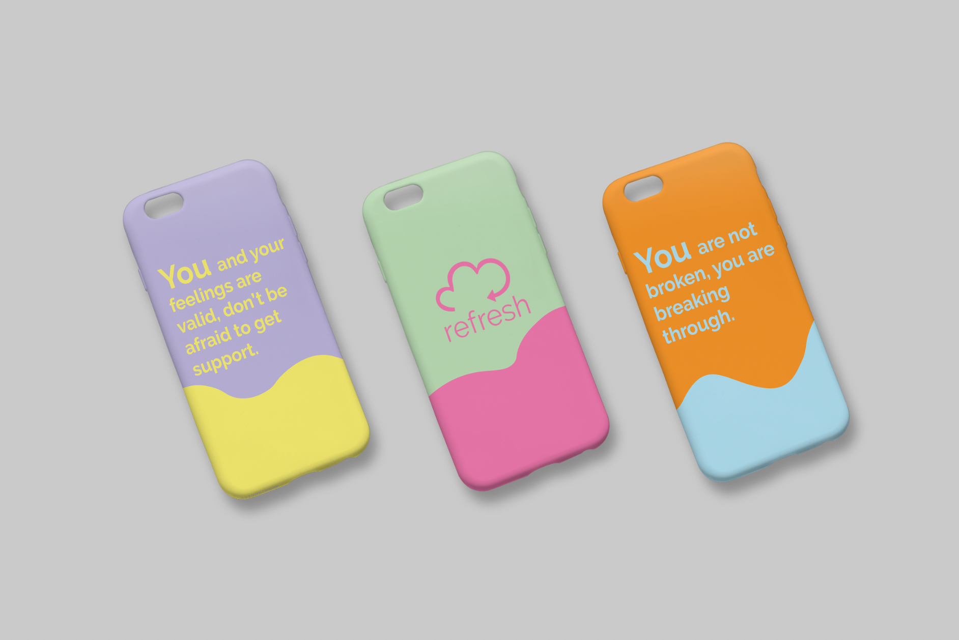My intention from all this research I had found was to help teenage girls who are a part of this community by creating a better environment on Instagram. Outcomes consisted of an online Instagram campaign called ‘Refresh’, helping to create a better environment on Instagram by refreshing your feed and mind. The campaign post uplifting content, with contrasting copytext and design, from what the dark Instagram accounts would post. Posters with the same contrasting copytext and design, put up around places to help spread the message of the campaign. A ‘refresh self-care box’ where you keep everything you need to carry out self-care in helping with your mental health. Finally, phone cases with the campaigns copytext and design as a constant reminder of your worth when you are on your phone.